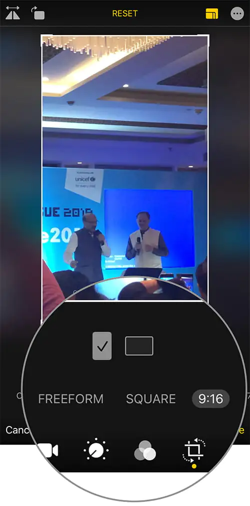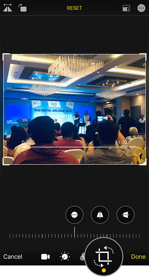 - Ekranın sağ alt kısmındaki Kırp (Crop) simgesine dokunun.