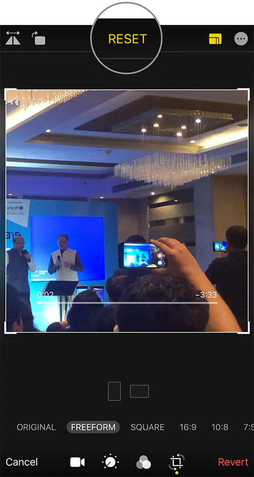 - Serbest biçim (Freeform) kırpmaya devam edin veya seçeneklerden Hazır ayarlar (Presets) seçeneğini seçin. Gerekirse videonun çerçevesini yeniden düzenlemek için video üzerine dokunun ve sürükleyin.