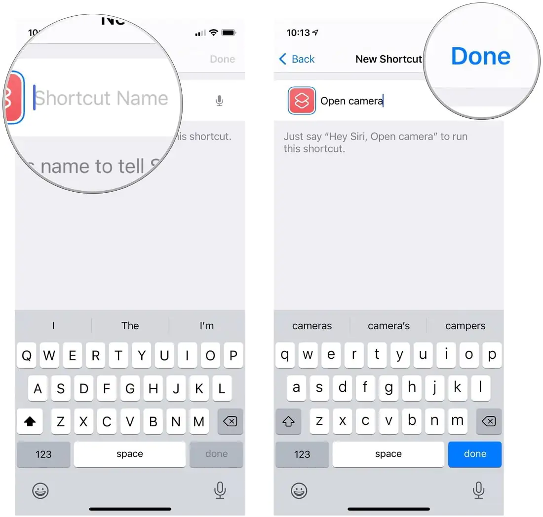 Kısayolu başarıyla oluşturdunuz. Şimdi, telefonunuzun arka kısmına çift veya üç dokunuşla kamerayı için aşağıdaki ayarları yapın: