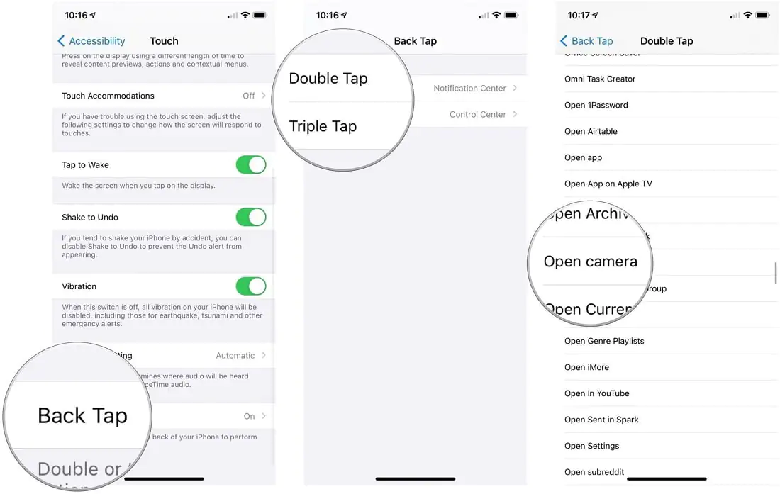 İşte, iOS 14 ve üzeri bir iOS sürümü yüklü bir iPhone’da; Back Tap özelliği ile bir Kamera (Camera) kısayolu oluşturmak için yapmanız gerekenler!