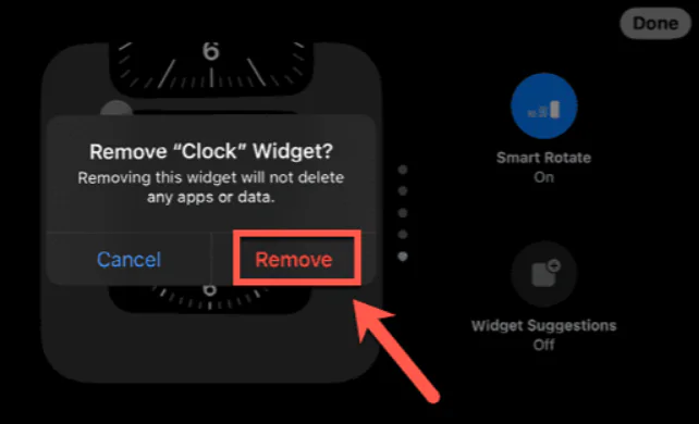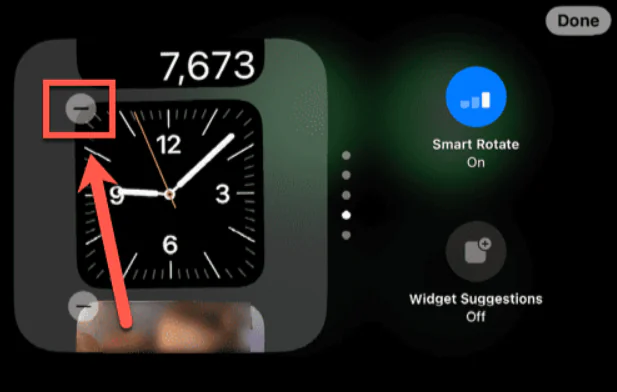 Saat widget’ını bulun ve kaldırmak için eksi (-) simgesine basın.