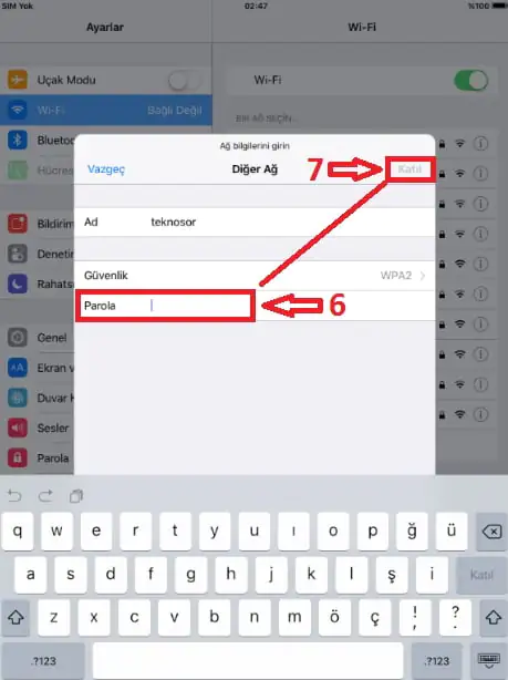Gerekli “Güvenlik” türü seçiminin ardından ise bağlanmak istediğimiz ağın parolasını yazıyoruz ve son olarak sağ üstte bulunan “Katıl” butonuna dokunuyoruz.