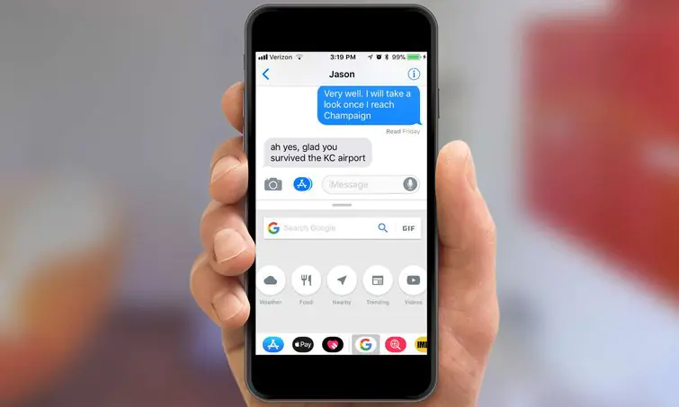 iOS 10’dan itibaren iOS işletim sisteminde ‘Mesajlar (Uygulaması)’na mini uygulamalar (eklentiler) ekleme özelliği getirildi ve iOS 11 ile birlikte bu özellik daha da geliştirildi. Dolayısı ile ‘Google Uygulaması (Google)’nın bu uygulamaya entegre olabilmesi mümkün oldu.