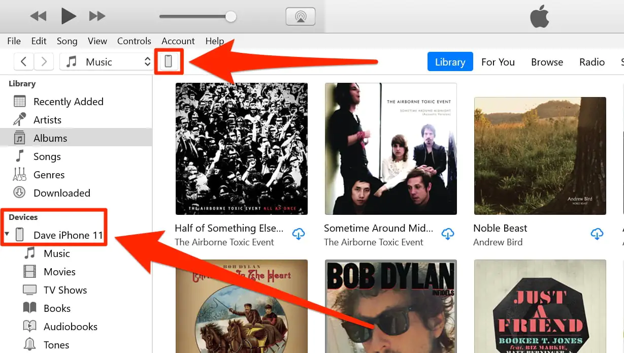 - Bilgisayardaki uygulama (iTunes ya da Apple Müzik) ekranında solda Cihazlar (Devices) için bir bölüm belirecek ve iPhone‘unuz, bu bölümün altında listelenecektir. Mac kullanıyorsanız, tıklayın. Windows bilgisayarda iTunes‘da, ekranın üst kısmına yakın bir yerde iPhone‘a benzeyen küçük simgeye tıklayın.