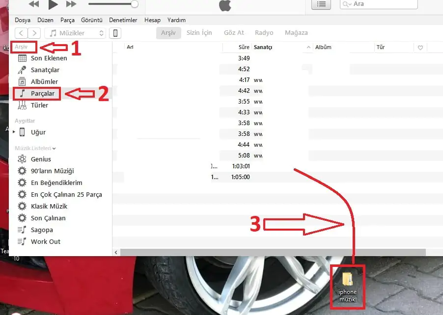 - Sonrasında ise iPhone’umuza yüklemek istediğimiz dosyaları masaüstünde bir klasöre depoluyoruz. Gerekli kopyalama işlemlerinin ardından iTunes programına girerek depoladığımız klasörü. Dosya çeşidine göre iTunes üzerinde bulunan Arşiv bölümüne sürüklüyoruz.