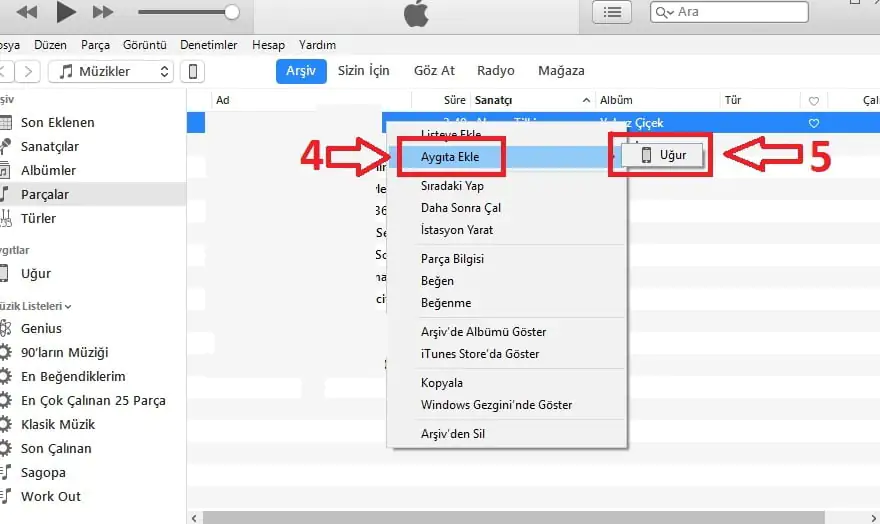 - Son olarak ise arşivimizde bulunan dosyaların üzerine sağ tuşla tıklayarak. Aygıt’a Ekle menüsü üzerinden iPhone cihazımızı seçiyoruz ve dosyanın taşınmasını bekliyoruz. Seçtiğimiz medya oldukça hızlı bir şekilde iPhone hafızasına kopyalacaktır.