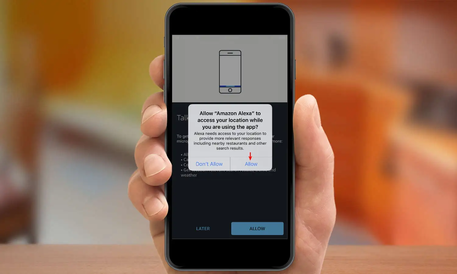 - Bu özelliği kullanmak için, ilk olarak iOS cihazınızda Alexa’ya bazı izinleri vermeniz (tanımlamanız) gerekiyor. Gelen ekranda ‘ALLOW (İZİN VER)’ butonuna dokunuyoruz.