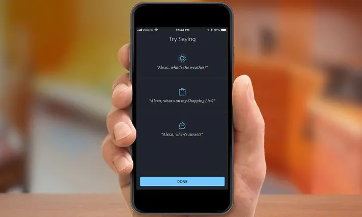 - Gelen pencerede (Bu özelliği ilk defa kullanıyorsanız) Alexa’ya sorabileceğiniz bazı sorular, verebileceğiniz bazı komutlar örnek olarak verilecek. Bu pencerede ekranın en altında bulunan ‘BİTTİ (DONE)’ butonuna tıklıyoruz.