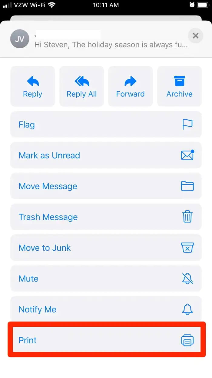 • Posta (Mail) uygulamasında, yazdırmak istediğiniz e-postayı bulun ve açın.