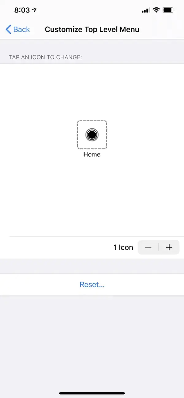 • AssistiveTouch ayarlarını açın ve Üst Düzey Menüyü Özelleştir (Customize Top Level Menu) seçeneğine dokunun.