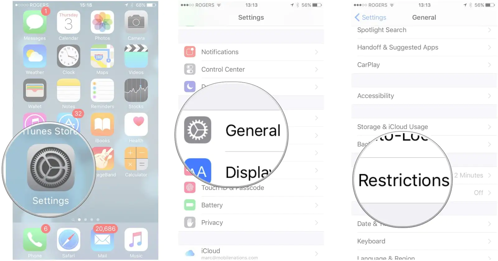 - Kısıtlamalar (Restrictions) seçeneğine dokunun.