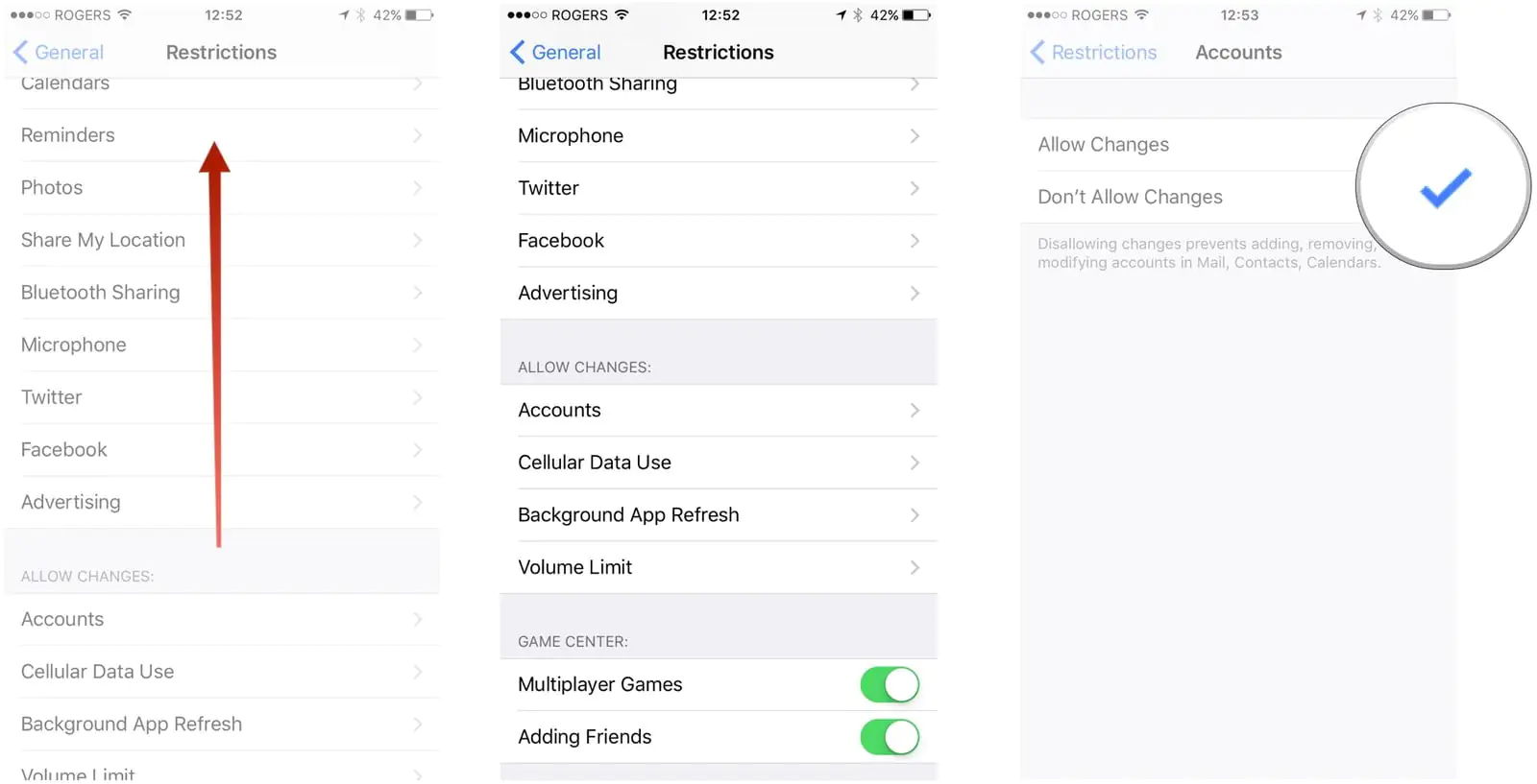 - Her biri için “Değişikliklere İzin Verme (Don’t Allow Changes)” seçeneğine dokunarak etkinleştirin.