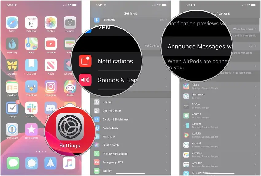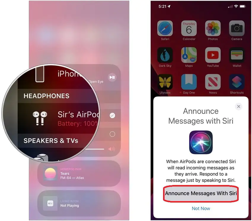 iOS 13 ve iPadOS 13 ile birlikte, AirPods’unuzu kullanarak, size gönderilen mesajlar için Siri’den sesli duyuru alabilirsiniz. Şu anda bu özellik yalnızca ‘Mesajlar (Messages)’ ile çalışıyor, ancak Apple, bu yılın sonlarına doğru iOS 13’ün yayımlanması ile birlikte üçüncü taraf mesajlaşma uygulamalarıyla da çalışacağını söyledi. Mesaj duyurularıyla birlikte, bir mesaj aldığınızda AirPods’unuzda veya Powerbeats Pro’nuzda sesli bir bildirim alacaksınız. Siri, mesajı göndereni bildirecek ve daha sonra gönderilen mesajı okuyacak. Cevap vermek isteyip istemediğiniz sorulacak ve daha sonra “onlara […] söyleyin” şeklinde, mesajınız sesli olarak söyleyip, iletebileceksiniz. Cevap vermek için “Hey Siri” demek zorunda değilsiniz. Şu an itibariyle bu özelliğin hâlâ βeta aşamasında olduğunu unutmayın. Ayrıca bu özellik yalnızca Apple‘ın H1 (wireless chip) kablosuz yongasına sahip kulaklıklarla çalışır. Birinci nesil AirPods kulaklıklar şu anda desteklenmiyor gibi görünüyor.
