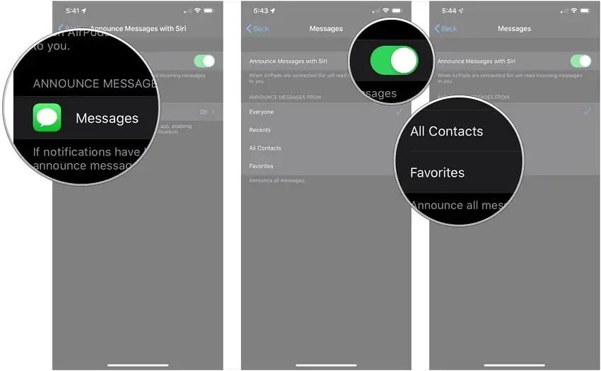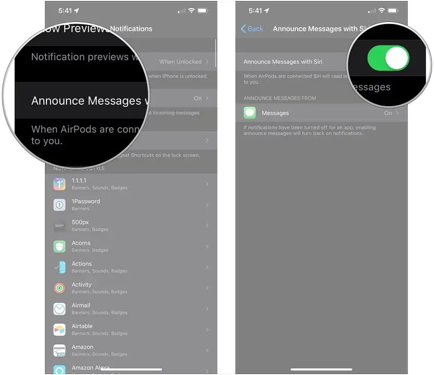 • ‘Siri ile Mesajları Bildir (Announce Messages With Siri)’ seçeneğine (butonuna) dokunun.