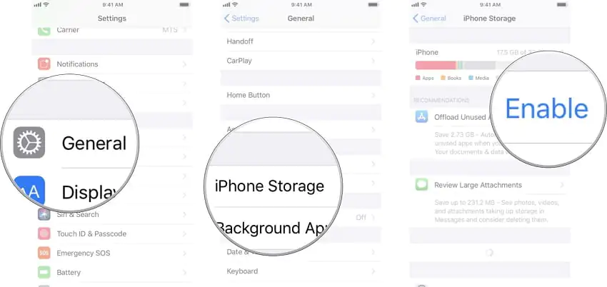 • ‘Kullanılmayan Uygulamaları Kaldır (Offload Unused Apps)’ seçeneğinin yanındaki ‘Etkinleştir (Enable)’ seçeneğine dokunun.