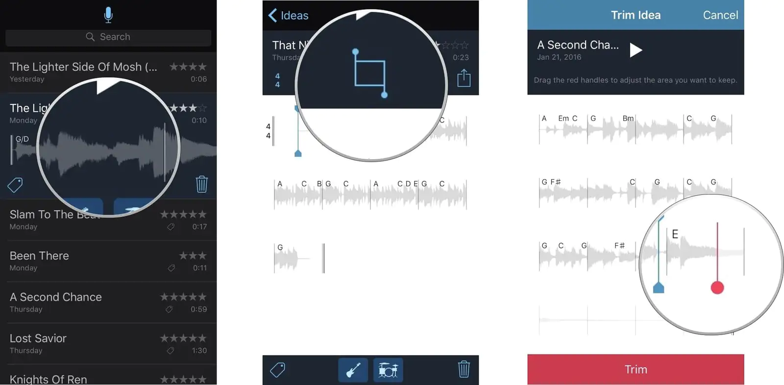 ‘Müzik Notları (Music Memos)’, aradığınız sesi yakalamak ve daha da mükemmelleştirmek için birçok kullanışlı düzenleme aracı sunar.