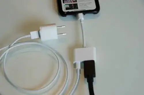 Not: Dönüştürücü adaptörün fazladan bir şarj bağlantı noktası (portu) olduğunu fark etmişsinizdir. Bunu, telefonunuz TV‘ye bağlıyken telefonunuza güç sağlamak amacıyla, bir şarj adaptörüne bağlamak için kullanabilirsiniz. Apple, adaptörle birlikte bir tane de şarj kablosu (ve şarj adaptörü) vermediğinden, bunun için ekstra bir AC adaptörüne (şarj adaptörü) ve şarj kablosuna ihtiyacınız olacak.