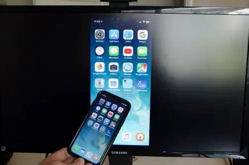 - Bu aşamadan itibaren, iPhone‘un ekranının TV‘ye yansıdığını göreceksiniz. Büyük ekrana sahip TV, iPhone‘un çözünürlüğünü çoğaltacak ve iPhone’un, TV’ye yansıyan ekran görüntüsü biraz garip görünecektir. Ancak fotoğraf ve video açtığınızda, iPhone, tam çözünürlüğü TV‘ye gönderecek ve dolaysıyla fotoğraflar, videolar net ve canlı görünecektir.