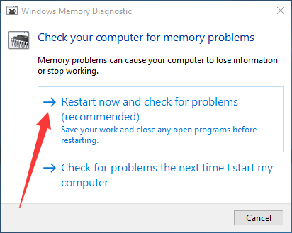 3. “Şimdi yeniden başlat ve sorunları kontrol et” seçeneğine tıklayın.