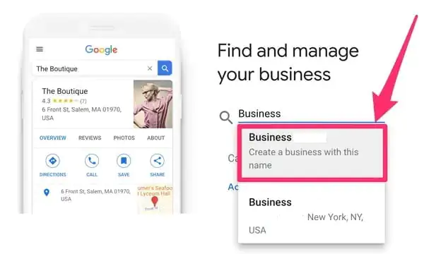 Not: Açılan menü listesinde işletme adınız ve adresiniz zaten görünüyorsa, bu, işletmenizin zaten (Google tarafından eklenmiş ve) listelenmiş olduğu ve kendi işletmeniz olarak sahiplenmeniz gerektiği anlamına gelir. Bbu durumda, bu seçeneği seçin ve bu işletmenin size ait olduğunu talep etmek için sayfalardaki adımları izleyin.