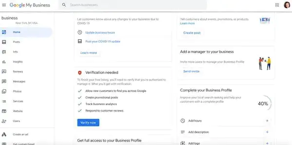• İşletmenizi hesabınızı ve sayfanızı ayarlamak için gerekli tüm bilgileri girdikten sonra, işletme logosu ve yardımcı yöneticiler gibi ek bilgiler ekleyebileceğiniz Google Benim İşletmem (Google My Business) hesap sayfanıza yönlendirileceksiniz.
