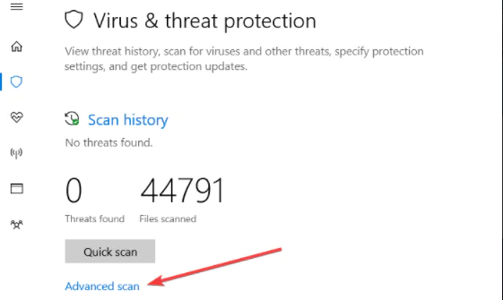 Bu nedenle, olası tüm virüs bozulmalarını ortadan kaldırmak için PC’nizde tam sistem taraması yapın. Ayrıca Windows’un yerleşik antivirüsü olan Windows Defender’ı da kullanabilirsiniz. Bunu nasıl yapacağınız aşağıda açıklanmıştır:
