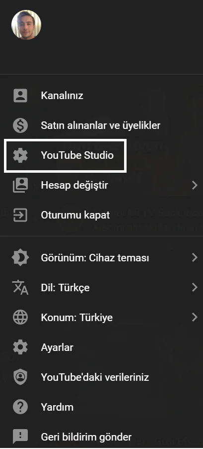 3.Bu alanda bulunan ‘Youtube Studio‘ sekmesine tıklayalım , eğer bir mobil cihaz ile işlem yapacaksanız ‘Youtube Studio‘ uygulamasını indirmeniz gerekmekte.