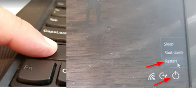 - Bu ekranda iken, klavyenizdeki ‘Shift’ tuşuna basarken, ekrandaki ‘Güç (Power)’ simgesine tıklayın ve ardından ‘Yeniden Başlat (Restart)’ı seçin.