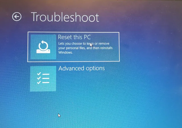 - Bir sonraki ekranda ‘Bu bilgisayarı sıfırla (Reset this PC)’ seçeneğine tıklayın.