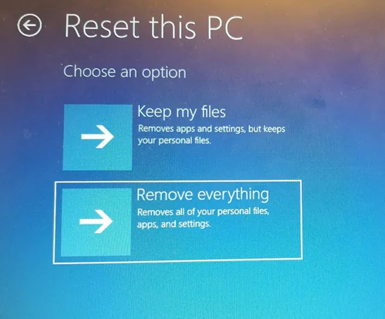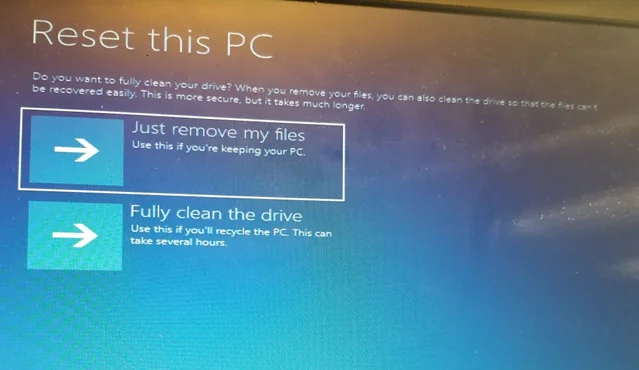 - Size en uygun seçeneği seçin. Seçiminizi yaptıktan sonra sıfırlama işlemi başlayacak.
