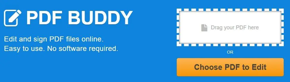 PDF Buddy, en iyi PDF editörleri listesindeki bir yeri hak eden başka bir araçtır. Hizmet ücretsizdir ve kullanılması için indirme veya kurulum yapılmasını gerektirmez. Aslında, PDF Buddy, doğrudan PDF belgelerini çevrimiçi olarak kolayca düzenlemenizi sağlar.