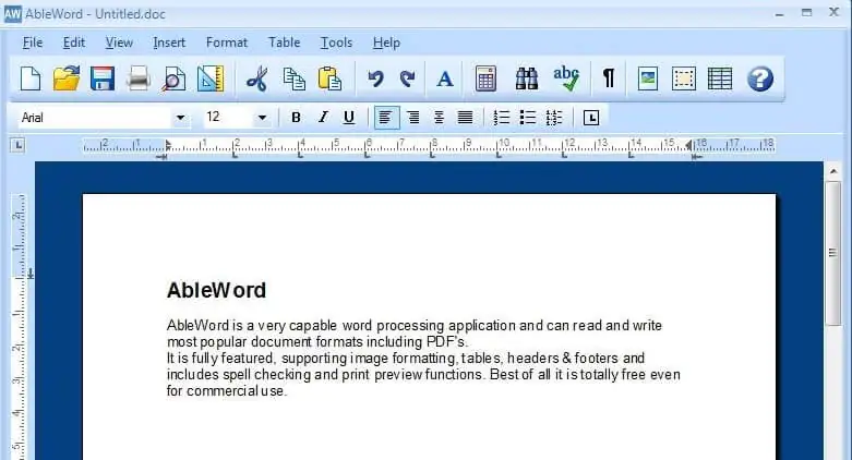 Bu PDF okuyucu ve derleyici, şu ana kadar bahsi geçen araçlar kadar popüler değil, ancak piyasadaki en iyi ücretsiz PDF editörlerinden biri olmaya devam ediyor. AbleWord ayrıca bir metin işlemcisi olarak da görev yapar. Bu nedenle, belgeleri Microsoft Word tarafından sunulanlarla aynı şekilde düzenlemeye izin verir.