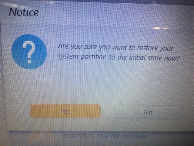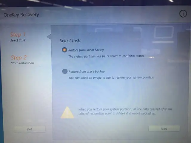 - OneKey Recovery menüsünde seçili olan Restore from initial backup seçeneği ile devam ediyoruz; bu seçenek seçili değil ise seçip, ekranın sağ alt kısmındaki Next butonuna tıklıyoruz.