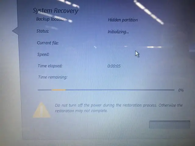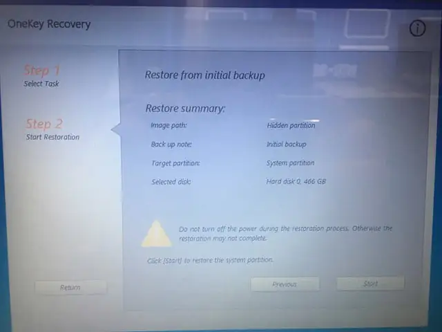 - Restore from initial backup sayfası gelecek; bu sayfada Start butonuna tıklıyoruz.