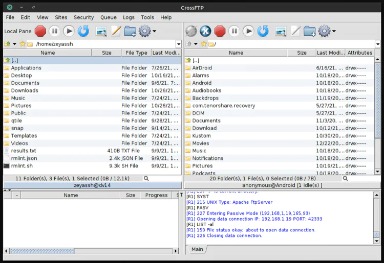 CrossFTP, Linux için başka bir platformlar arası FTP istemcisidir. Tıpkı FileZilla gibi, hızlı arama, çoklu bağlantı ve çok yönlü protokoller ve bulut depolama hizmetleri desteği gibi olağan özellikler listesi sunar. Ancak birkaç ek özelliği de beraberinde getirir.