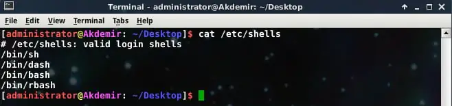 Bu işlem için ise sisteminizdeki tüm kabukları bulmanız adına aşağıdaki komutu yazmanız yeterli olacaktır.
