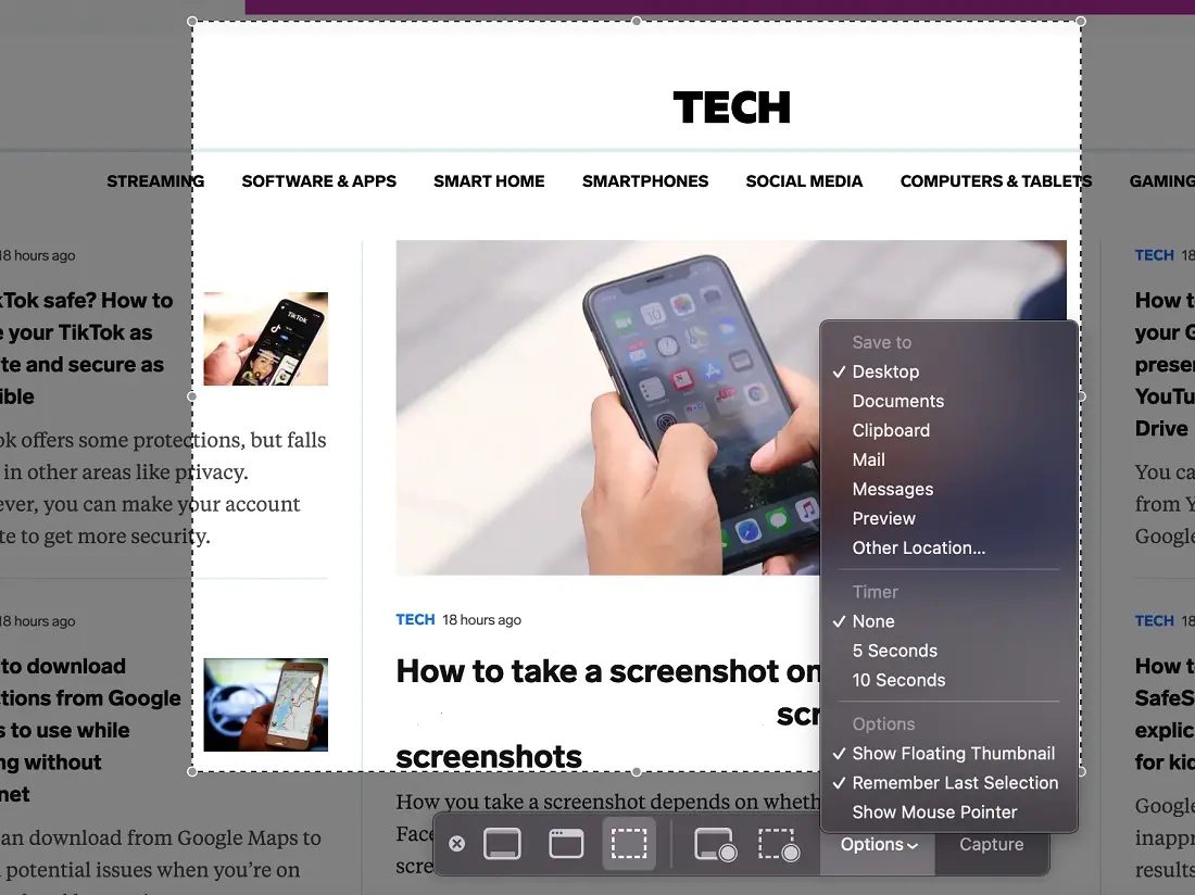 • Varsayılan ayarlarda, yaptığınız ekran kayıtları masaüstüne .mov dosyaları olarak kaydedilecek. Bu varsayılan ayarları, Ekran Görüntüsü Araç Çubuğu’nu (Screenshot Toolbar) açıp; Seçenekler (Options) menüsüne tıklayarak değiştirebilirsiniz.