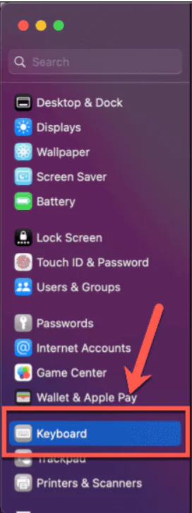 • Sol taraftaki menüde aşağı doğru ilerleyin ve Klavye’ye tıklayın.
