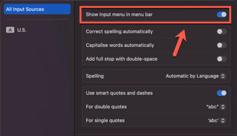 • Menü Çubuğunda Giriş Menüsünü Göster anahtarını açık konuma getirin.