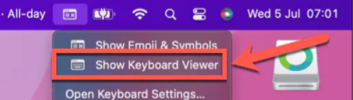 Düzeltmenin işe yarayıp yaramadığını test etmek için istediğiniz zaman menü çubuğundaki Klavye Görüntüleyicisi simgesine tıklayabilirsiniz.