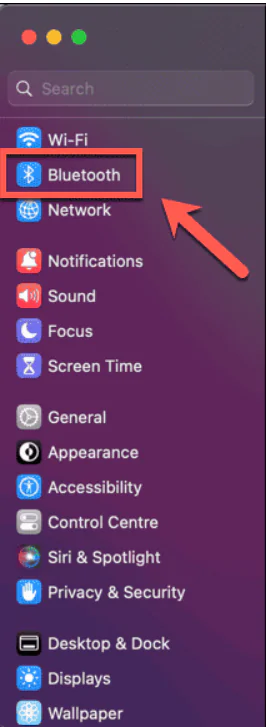 • Sol taraftaki menüden Bluetooth’a tıklayın.