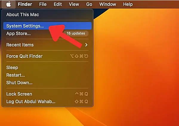 - Ekranınızın sol üst köşesindeki Apple menüsünü tıklayın ve Sistem Ayarları’nı seçin. MacOS’un eski sürümlerinde bu öğe Sistem Ayarları olarak etiketlenecektir.