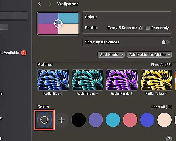 - Sistem Ayarları’nı açın ve Duvar Kağıdı -> Renkler’e gidin. Renkler sekmesinde Otomatik Döndür seçeneğini arayın. Kenarlıkları vurgulanmışsa bu, bu özelliğin Mac’inizde etkin olduğu anlamına gelir. Devre dışı bırakmak için tıklayın.