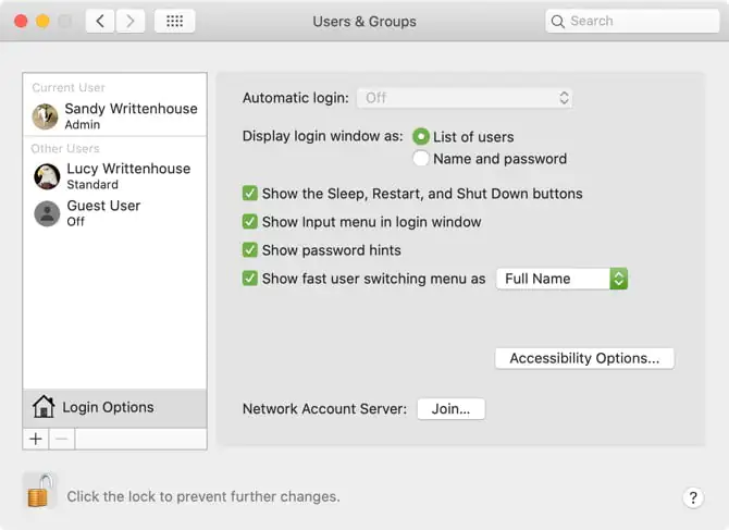 Otomatik giriş: Bu özellik, önce kimlik bilgilerinizi girmek yerine Mac’inizi başlattığınızda doğrudan masaüstüne gitmenizi sağlar. Otomatik giriş özelliğini açın ve etkinleştirmek için kullanıcının hesap adını ve şifresini girin. Mac’inizin tek kullanıcısıysanız ve bilgisayarı her zaman güvenli bir yerde tutarsanız uygundur.