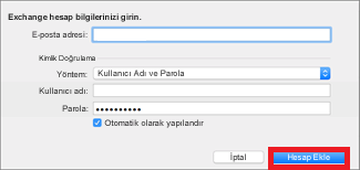 Ekleyeceğimiz hesap seçeneğini seçtikten sonra karşımıza çıkacak olan ekranda hesap bilgilerimizi girip Hesap Ekle butonuna tıklıyoruz
