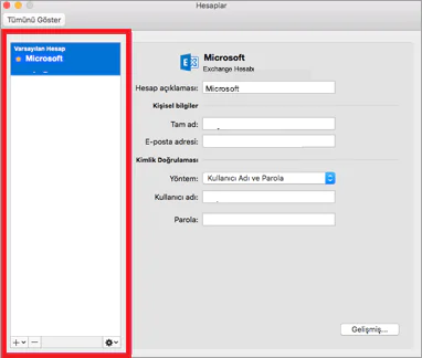Ekleyeceğimiz hesaplar açılan ekranda sol tarafta gözükecektir.