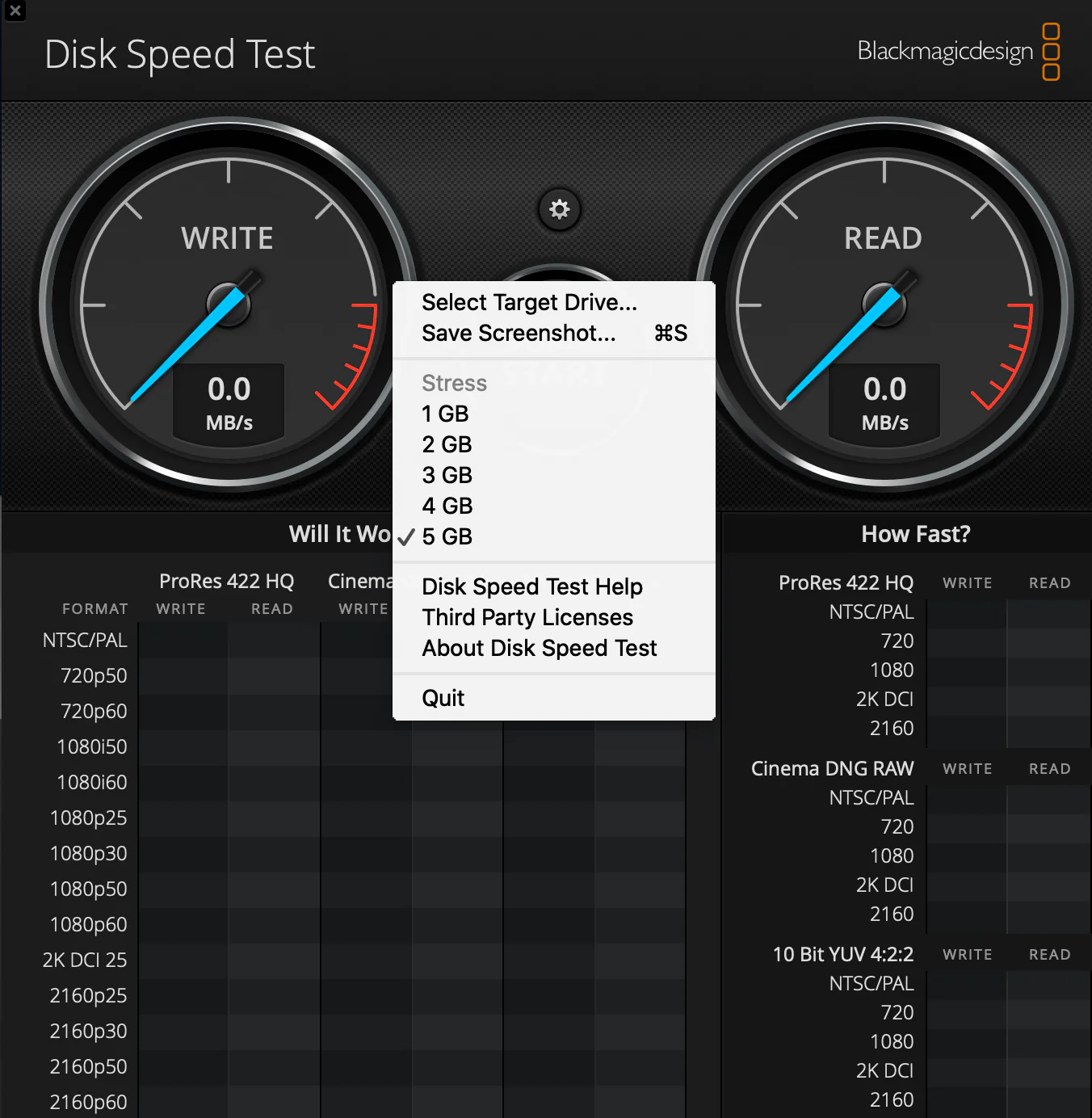 Bilgisayarlarımızda kullandığımız hard disklerimizin yada harici bir depolama aygıtımızın  okuma yazma hızını öğrenmek istersek app store üzerinden bize ücretsiz sunulan Blackmagic Disk Speed Test uygulaması üzerinden  okuma yazma  değerlerini öğrenebiliriz.