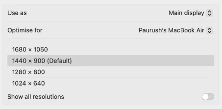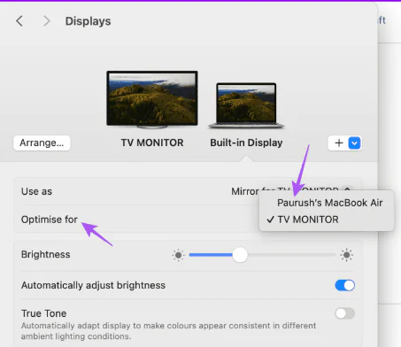 - En İyi Duruma Getir’in yanındaki açılır menüye tıklayın ve çıktı çözünürlüğünü değiştirmek için MacBook’unuzu seçin.