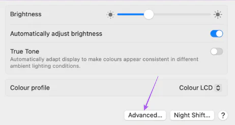 Bu, TV’nizdeki çıkışı MacBook’unuzun ekran çözünürlüğüne göre kalibre edecektir. Çözünürlük için daha fazla seçenek elde etmek için alttaki Gelişmiş’e tıklayın.
