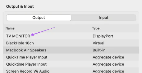 Soldaki menüden Ses’e tıklayın. Ardından, Çıkış cihazınız olarak seçmek için TV Monitörü’ne tıklayın.